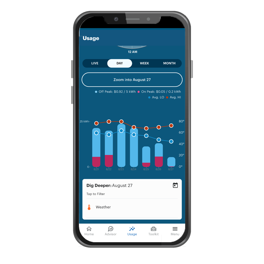 Get easy to read graphs that show live, daily, weekly and monthly use so you know exactly what’s driving your bill.